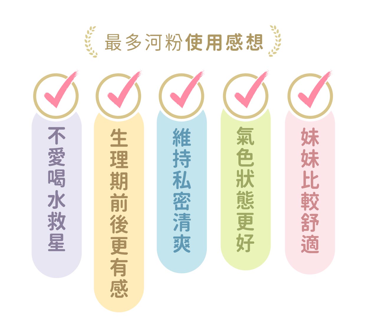適合族群:久坐上班族、忙碌壓力大、水分補充不足者,以及處於青春期、生理期、孕哺期、更年期之女性皆適用此產品。